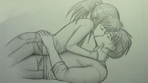 Чаще всего любовь можно заметить в нежных прикосновениях и еще чаще в поцелуях. Поэтому, в данном примере мы будем рисовать целующуюся влюбленную пару. Готовьте карандаши, бумагу и ластик! Наша парочка будет находиться в горизонтальном положении, то есть в положении лежа. Для удобства можете обводить их квадратиками, только не слишком сильно нажимайте на карандаш. Итак, рисуем голову мальчика и девочки. Теперь прорисуем их туловища и руки. Рука девушки будет лежать на шее парня, а рука парня на талии девушки...