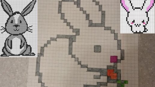 Рисунок "Зайчик" по клеточкам в тетради. Мастер-класс для взрослых и детей + 6 легких идей