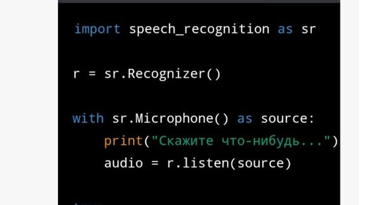 Код ИИ для создания робота который отвечает на простые вопросы и распознать речь и объекты . Есть программа чат GPT по запросу написал код программы, вот что выдает. Создание ИИ для робота, способного отвечать на простые вопросы и распознавать речь и объекты, требует достаточно много кода и ресурсов. Однако, я могу предоставить общую структуру для такого робота и некоторые примеры кода на Python. Распознавание речи: Для распознавания речи на Python можно использовать библиотек код копирования на python import speech_recognition as sr r = sr...