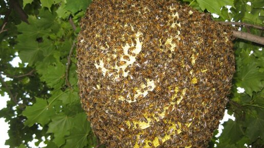 Огромный рой вылетел из улья: несколько роёв пчёл собрался в один
