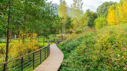 Сегодня мы будем гулять по ландшафтному парку, рельеф которого многие века создавали река Шмелёвка и её малые притоки. Практически весь парк расположен в овраге и частично – на его склонах. И до недавнего времени это был обыкновенный заросший глубокий овраг, разделявший два соседних района – Зябликово и Орехово-Борисово Южное. Каким он стал теперь, и что в нём такого особенного – расскажем во время прогулки. Идёмте! 🎧 Некогда читать? Листайте картинки и слушайте: аудиогид доступен на Яндекс.Музыке 👇 У этого нового парка на юге Москвы несколько названий...