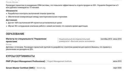 Образец резюме руководителя проектов 2025: как составить идеальное CV