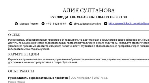 Пример резюме руководителя образовательных проектов 2025 - Как составить