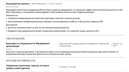 Пример резюме Руководителя проектов 2025 - как составить