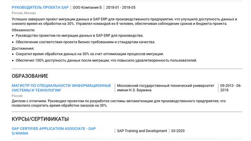Пример резюме руководителя проекта SAP 2025 - как составить
