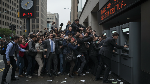 Бэнк ран — это классическая ситуация в экономике, когда множество людей в панике бросаются снимать свои деньги из банка, боясь, что он вот-вот разорится. Представьте: слухи распространяются молниеносно, и все клиенты, от простых пенсионеров до бизнесменов, стоят в очередях, требуя наличные. На деле банки не держат все средства в кассе — они инвестируют их в кредиты и другие активы, чтобы приносить прибыль, следовательно средств для выдачи клиентам у них физически нет. Из-за этого внезапный массовый вывод денег приводит к острой нехватке ликвидности, и даже крепкий банк может рухнуть...