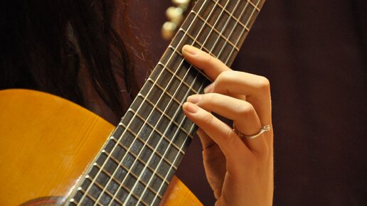 Прежде чем начать что-то играть, гитару нужно настроить. Сделать это можно, например, через онлайн-тюнер или с помощью другого настроенного музыкального инструмента...