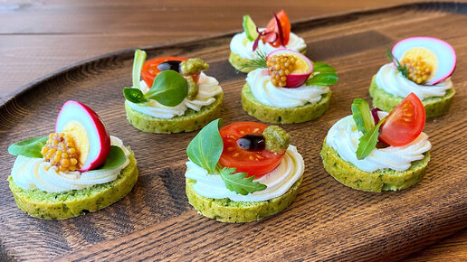 Здравствуйте, дорогие читатели! Как-то показывала рецепт приготовления зеленого багета. Делала с ним праздничные бутерброды с морепродуктами и рыбой. У нас прижился этот рецепт и подача всем очень нравится, да и вкус отличный. Сегодня хочу показать, как приготовить основу для маленьких бутербродов или можно сделать канапе. На праздничном столе такое угощение очень симпатично смотрится. Канапе-бутерброды можно сделать с чем угодно, хоть с ветчиной, хоть с рыбой, хоть с овощами. Это уже по вкусу ваших гостей...