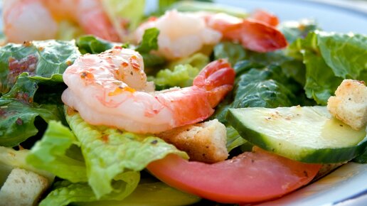 Креветки — отличный источник белка, витаминов и минералов. Но, при этом они также сильный аллерген и источник холестерина. Они вкусные и для многих полезные, но с ними надо быть осторожными. Если у вас нет проблем со здоровьем, то рекомендую включать креветки в свой рацион. Нет, не есть их килограммами за раз, а готовить разнообразные салаты с ракообразными. Мясо креветок отлично сочетается как с овощами и зелеными салатами, так и с фруктами и ягодами. 5 разнообразных легких салатов с креветками 1...