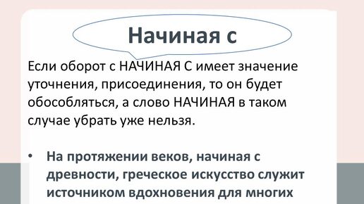 Продолжаем разговор об обособлении обстоятельств. Есть такое слово - начиная.
