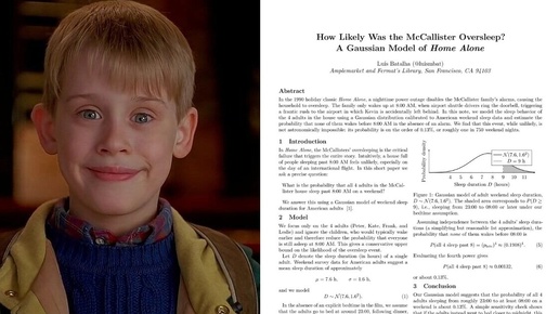 К концу года кто-то работает в три раза усерднее, что закрыть все незакрытые задачи до конца года. А кто-то теоретизирует на тему "Почему проспали родители в семейной комедии 1990 года"? Вполне серьёзный учёный-физик Луис Баталья видимо уже отложил все свои дела на "после праздников" и решил пересмотреть "Один дома". Когда сюжет знаешь наизусть, начинаешь во время просмотра задумывать о разных мелочах. Чем и занялся Баталья. Я пересмотрел "Один дома" и теперь меня не мучает один вопрос: Насколько...