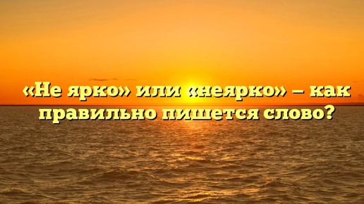 «Не ярко» или «неярко» — как правильно пишется слово? Продолжительность светового дня зимой заметно меньше, чем летом. Конечно, каждому из нас, особо в больших городах, не хватает этого ласкового лучика среди тусклых и суетливых будней. А если солнце проглянет на мгновение, как оно будет светить: «не ярко» или «неярко»? Как пишется правильно: «не ярко» или «неярко»? Орфографический словарь русского языка в качестве правильного предлагает два варианта. Конечно, чтобы понять, как верно написать, необходимо обратиться к правилам...