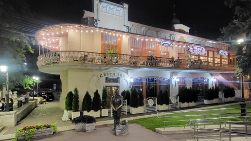 Посещение август 2025г. Есть в Пятигорске весьма красивое и примечательно историческое здание, именуемое «Кофейней Гукасова». Название с историей, здание с историей (спроектирована и построена в 1905-1909 годах, является Объектом культурного наследия регионального значения) , даже сама кофейня (которая открылась именно как кофейня на двух этажах этого здания в 1909 году) с историей, но есть нюанс. Расположено оно сразу при входе в парк «Цветник», в котором Киса просил милостыню, а Бендер назначал встречу монтёру Мечникову...