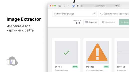Не всегда получается скачать нужную картинку с сайта. Очень часто изображения, поверх которых написан текст, просто не открываются: например, на сайте Apple. Или если хотите скачать сразу все изображения с страницы, не кликая на все картинки каждый раз, есть выход. Воспользуйтесь сервисом Image Extractor — он автоматически извлекает все изображения с любого общедоступного сайта. Один клик и вы сохраните себе все изображения с сайта...