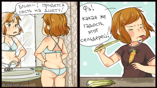 Если вам когда-нибудь приходилось отказываться от сладкого или садиться на диеты, то вы наверняка сможете понять чувства героев комиксов в сегодняшней подборке. Ведь на этот раз вас ждут 10 забавных зарисовок о лишнем весе и похудении - для всех, кто иронично смотрит на мир и готов посмеяться даже над теми темами, которые порою принято умалчивать. Надеюсь, что эти картинки поднимут вам настроение! Российская художница под псевдонимом Colormood известна в сети благодаря своим комиксам о волке, который постоянно что-то съедает...