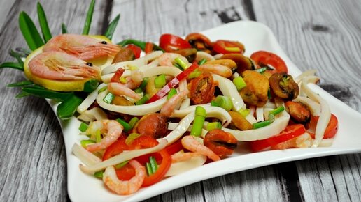 Рецепт вкусного салата с морепродуктами от шеф-повара! Попробуй!!!