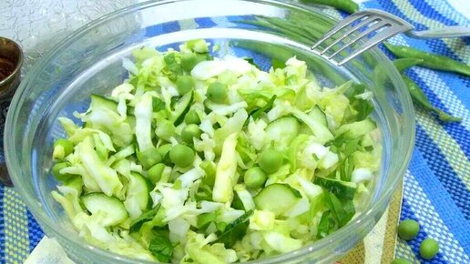 Летом такой салат у нас заходит "на ура", он легкий, вкусный, свежий и хрустящий - прекрасно подходит к любым блюдам, шашлыку и др. Ну а мне этот салат полюбился еще и за то, что его очень просто и быстро готовить. Для него не нужно варить ингредиенты - все можно сразу нашинковать, заправить и подавать на стол. Просто, быстро и вкусно - все, как я люблю. Приготовление: Капусту мелко нарезаем. Если она ранняя (а именно такую я и использую летом), ничего дополнительно с ней делать не нужно. Если же капуста зимняя, рекомендую помять ее руками с солью...