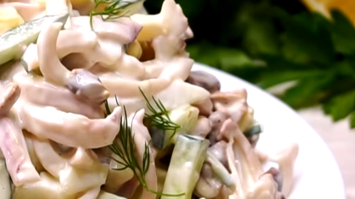 Рецепт салата, который в моей семье, нравится всем. Гостям тоже такой салат по души, всегда спрашивают рецепт. Готовится салат из кальмара и свежего огурца. На вкус получается нежный и сочный. Один из любимых и вкусных салатов. Попробуйте и вы, уверена вам понравится. Итак для начала берем кальмары и удаляем хорду. Затем в кастрюлю наливаем воду и доводим до кипения. Опускаем кальмары в кипящую воду и держим их 2-3 минуты, не больше.