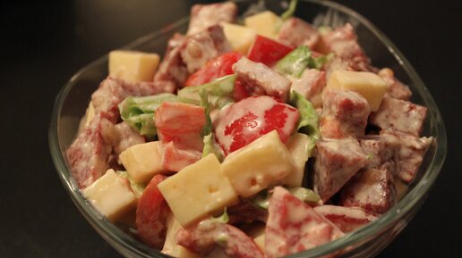 Салат с колбасой и сыром: быстрый и вкусный рецепт🥗