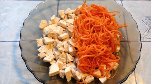 Продукты: Заходите на мой сайт и читайте ещё больше новых рецептов Как приготовить Курицу промыть и отварить в кипящей воде до готовности, примерно 20-25 минут после закипания. Затем остудить куриное мясо, порезать кусочками, либо разобрать на волокна. Сыр натереть на средней терке. Перец помыть и порезать соломкой, либо кубиками среднего размера. Готовую корейскую морковь слегка отжать, удалив лишний сок...
