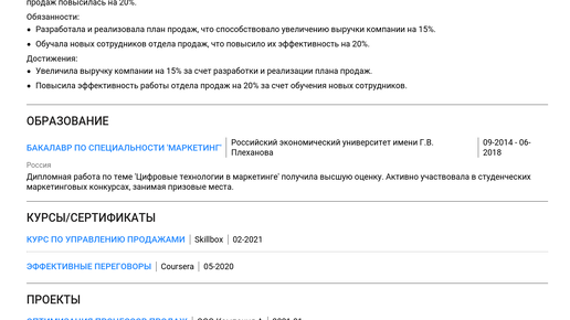 Пример резюме sales executive — ваш ключ к пониманию, как создать документ, который действительно работает. Изучение готовых примеров — самый быстрый и эффективный способ составить резюме, которое поможет получить приглашение на собеседование и успешно найти новую работу. ✨ На этой странице мы собрали все, что нужно для создания сильного резюме sales executive, подходящего как для начинающих, так и для опытных специалистов. Вас ждут: Изучив наш подробный пример, вы сможете быстро создать свое идеальное...