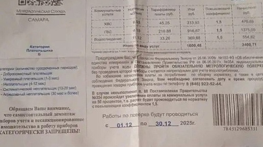 В Самаре участились случаи рассылки квитанций об обязательной метрологической поверке счетчиков на воду. Минэнерго и ЖКХ показало, какие уведомления следует игнорировать. - Мы наблюдаем учащение случаев рассылки так называемых «извещений» от организации «Метрологическая служба. Самара». Поверка приборов учета проводится в нормативные сроки аккредитованными организациями...