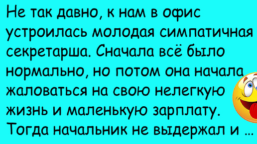 К нам в офис взяли новую секретаршу – молодую симпатичную девушку. Скорее всего, начальник выбирал её исходя из её внешних данных. Ну и, наверное, протестировав её умственные способности. Девушка вроде была и неплохая, но с амбициями. Особенно, если это касалось зарплаты. Она работала-то у нас без году неделя, а уже возмущалась, почему мало получает. Мы ей немного подсказывали, чтобы она не сильно докучала начальству на этот счет. А то мало ли, уволят или премии лишат. Но она нашим советам не особо вникала, и при случае продолжала жаловалась на жизнь...