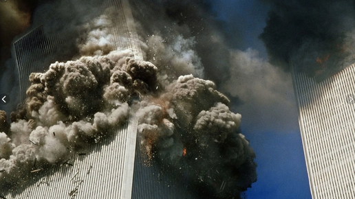 Самолёты врезались в верхние этажи башен-близнецов, 9/11/2001: огонь и дым стремятся вверх