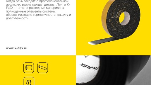 Больше, чем просто лента Когда речь заходит о профессиональной изоляции, важна каждая деталь. Ленты K-FLEX — это не расходный материал, а полноценные элементы системы, обеспечивающие герметичность, защиту и долговечность. Ассортимент решает разные задачи: Для соединения: Самоклеящиеся ленты из вспененного каучука (ST, ECO, SOLAR HT) для надёжной герметизации стыков основной изоляции. Для защиты:...