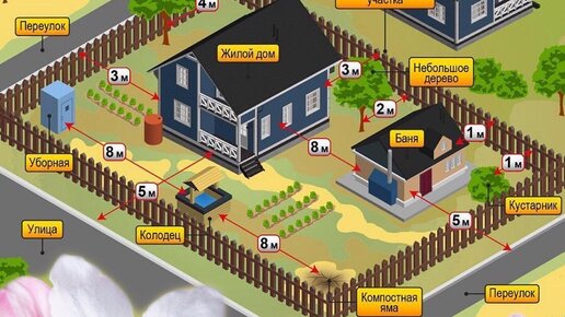 Сколько метров отступать от забора соседей при строительстве бани, гаража, курятника, а при высадке 🌳по закону и без штрафов