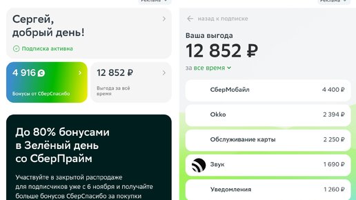 Год с подпиской СберПрайм+. Подвожу итоги окупаемости.
