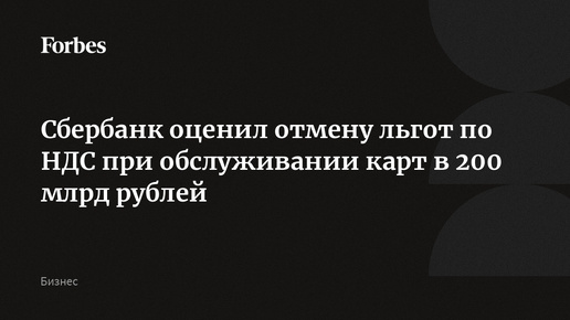 Сбербанк оценил отмену льгот по НДС при обслуживании карт в 200 млрд рублей