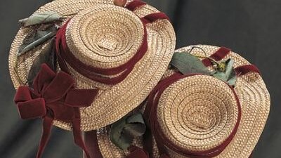 Недавно я писала как делала шляпку из кружева. МК здесь: Но шляпку можно сделать из чего угодно. Самый распространенный способ из шляпной тесьмы. Шляпную тесьму можно раздобыть из человеческой шляпы, если найти в продаже тесьму не удается. Посмотрите, как делают шляпки для кукол из такой тесьмы. Сначала делают дно шляпы, наматывая тесьму по кругу и фиксируя ее нитками к предыдущему слою. Нашивать можно вручную, можно на швейной машинке - кому как удобно. Затем формируем тулью и поля. Размеры сверяем с размерами кукольной головы...