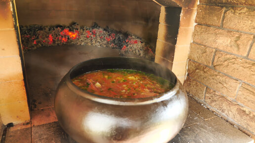 Всем привет. Щи для русской кухни это не просто блюдо, щи это что то большее,особенно если Вы их приготовили правильно. Сегодня готовим щи в чугунке в дровяной печи. Поехали! Для приготовления нам потребуется: Телятина грудинка 2кг Картофель Квашеная капуста Свежая капуста Помидоры Лук Морковь Чеснок Петрушка Перец чили Соль Перец Грудинку нарезаем крупно и кладем на дно чугунка. У меня чугунок на 9 литров. Сверху мяса идет лук нарезанный на полукольца, далее тертая морковь. Далее в чугунок отправляем нашинкованную свежую капусту и квашенную капусту с рассолом...