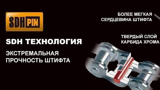 Мы наконец-то готовы раскрыть вам это величайший секрет) Если между втулкой и штифтом цепи попадает грязь и песок, то это приводит к трению и повреждению элементов цепи. Эффективность цепи снижается и постепенно она выходит из строя. Инженеры DID придумали способ, как увеличить прочность штифта, чтобы он меньше страдал от подобного трения. Для этого они покрыли его поверхность карбидом хрома. Этот материал имеет фантастическую прочность к истиранию. Он надежно защищает штифт и увеличивает срок службы цепи примерно в 1,5 раза по сравнению с цепями без такого покрытия...