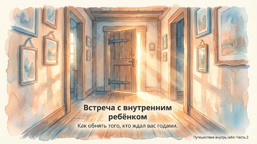 Помните тот дом, который мы построили в прошлый раз? Тёплый, безопасный, ваш. Сегодня мы зайдём в самую важную его комнату. Ту, где живёт ваш внутренний ребёнок. Тот самый — маленький, настоящий, иногда напуганный. Он помнит всё: и радость первого снега, и боль от несправедливых слов, и моменты, когда ему так нужны были объятия, но их не было. И знаете что? Он до сих пор ждёт. Только теперь обнять его можете именно вы — взрослый, сильный, способный дать защиту. Добро пожаловать во вторую часть нашего цикла «Путешествие внутрь себя»...