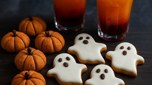 Три простых рецепта на Хэллоуин 2025: печенье «Тыквочки», «Привидения» и коктейль «Кровавая апельсинка»