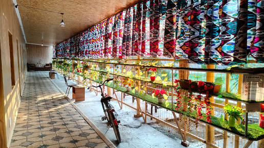 Попугаи, рыбы, куры и вообще необычная обстановка вокруг. У меня было ощущение караван-сарая😄. Выбора в Фергане особо не было. Это же город не такой туристический, как те, что мы до этого посетили. И если я готова снова вернуться в гостевые дома, где мы жили в Ташкенте, Хиве, Бухаре и Самарканде, то в этот вряд ли. Не скажу, что это было отвратительно. Даже и плюсы были. Например на завтрак каждый день давали свежий творог с густой сметаной😀. А вы уже знаете, что творог - это моя любимая еда🙏...
