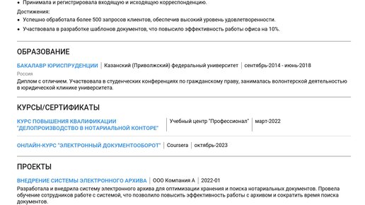 Пример резюме секретаря нотариуса 2025 - готовые примеры