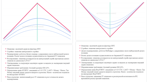 В связи с обилием вопросов о готовых стратегиях биржи АЕ вообще и дельтахедже купленной/проданной волатильности в частности выскажусь публично еще раз. Вот уже некоторое время на бирже АЕ существует продукт – готовые стратегии покупки / продажи волатильности BTC. Технология выполнения данных стратегий по сути одинакова, но с противоположным знаком. Стратегия покупки волатильности подразумевает собой покупку волатильности BTC на центральном страйке с последующим дельтахеджированием купленного стредла по биржевым параметрам IV...