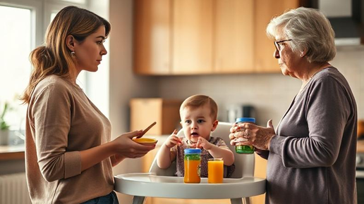 — Сёма не будет есть эту химию! Слова Веры прозвучали так резко, что Полина вздрогнула всем телом. Она стояла у плиты, помешивая в маленькой кастрюльке свежеприготовленное яблочное пюре. Пар поднимался мягкими облачками, наполняя кухню сладковатым ароматом. За её спиной, в высоком детском стульчике, восьмимесячный Сёма нетерпеливо стучал ладошками по столику, предвкушая еду. Полина обернулась. Свекровь стояла в дверном проёме, заполнив его своей массивной фигурой. В руках она держала три ярких баночки с детским питанием промышленного производства...