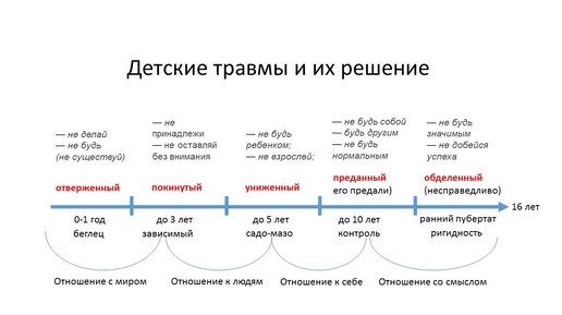 Психологические травмы Вы знаете, что все ваши сложности в семейной жизни, все ваши нерешенные проблемы со своим супругом, болезненные точки, на которые ваш супруг давит, все причины ссор между вами предопределены уже очень давно? Фактически ваш семейный сценарий родился до вашего совершеннолетия, точнее до 16 лет. Я поясню, как это происходит. Уже не раз в своих соцсетях говорила о том, что, когда мы встречаемся, например, молодой мужчина и молодая женщина встречают друг друга, они друг другу показывают руководство, по которому они бы хотели свои отношения развивать...