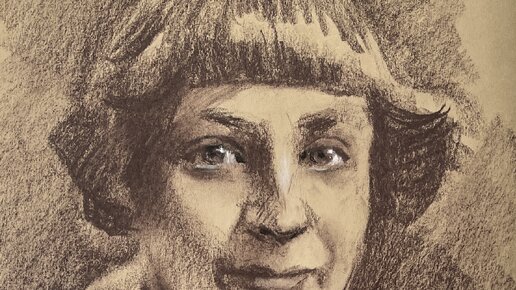 Продолжаем рисовать портреты в разных техниках Сегодня рисуем сепией - мягкий графический материал Материалы рисования в сепии: крафтовая бумага, сепия, мел (можно белую пастель) и ластик (клячку); Последовательность шагов рисования портрета: намечаем овал головы; находим вертикальную осевую линию. Внимание, голова в повороте 3/4 слева направо, значит и осевая линия смещается вправо. По ней выстраиваем левую и правую части лица. Всё, что слева будет больше, чем справа! Новички часто делают ошибки, особенно, при рисовании глаз...