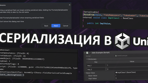 Любой Unity-разработчик знаком с атрибутом [SerializeField], который позволяет сериализовывать непубличные члены класса и, соответственно, отображать их в инспекторе. Но, в силу его ограниченности, позже начали появляться и другие способы сериализации. Попробую кратко рассказать, какие альтернативы используются, зачем все они нужны, как работают и, о чём не любят писать в кликбейтных постах, какие подводные камни могут скрывать. Следить за выходом новых статей и другого контента можно в моём блоге на VK / Telegram / Dtf...