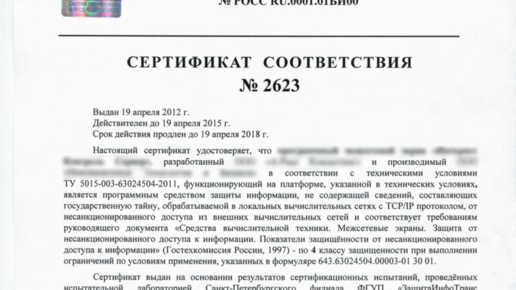 Сертификат и аттестат ФСТЭК