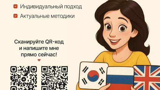 ✨ Друзья, хочу порекомендовать вам человека, которого я по праву считаю лучшим педагогом по английскому и корейскому языкам — мою сестру Юлию. Она больше 20 лет жила за границей, получила 4 высших образования (все по стипендиям!) и преподаёт так, что даже самые сложные темы становятся простыми и понятными. 📚 Огромный опыт, индивидуальный подход, современные методики — всё это про неё...