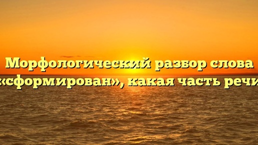 Морфологический разбор слова «сформирован», какая часть речи Морфологический разбор слова «сформирован», какая часть речи Слово «сформирован» можно разбить на части: «с-», «форми-», «-рован». Первая часть – приставка, вторая – корень, третья – суффикс. Корень слова – «форми» – является основой, описывающей действие существительного «форма». У слова могут быть несколько вариантов приставок и суффиксов в зависимости от контекста, который определяет часть речи. Слово «сформирован» – это форма прошедшего времени, глагола «сформировать», то есть действительного залога, 3 л...