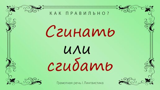 "Сгинать" или "сгибать"? Глагол «сгинать» можно услышать либо в диалекте, либо в речи многих людей. В словарях его если и можно встретить, то с пометкой просторечия. • Правильный вариант – «сгибать». И только он. И не имеет значения, кто или что сгибается: суставы в спортзале, бумага на мастер-классе по оригами или человек под грузом ответственности...