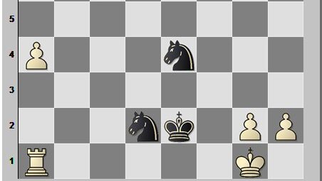 В позиции на диаграмме окончание одной из партий за мировую шахматную корону 1978 года в Багио (Филиппины) с Виктором Корчным. Карпов (чёрные) всю партию боролся за равенство, но в концовке, после грубой ошибки белых ему улыбнулась удача.
