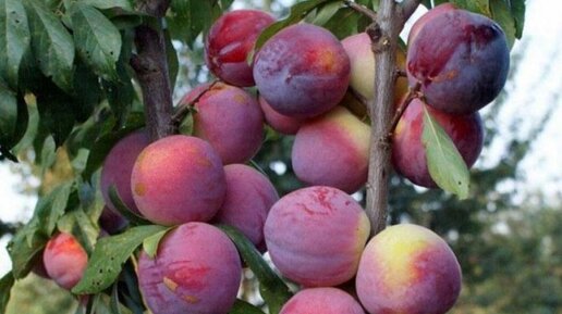 Шарафуга – это необычный гибрид, полученный от скрещивания сливы, абрикоса и персика. Название происходит от сочетания слов "шаРосслива" (слива + абрикос) и "неКтарин" (персик). Этот фрукт сочетает в себе лучшие качества своих "родителей": сочность абрикоса, сладость сливы и бархатистость персика. Хотя, многие питомники продают ее без названия сорта, просто Шарафуга. ✔ Устойчивость к болезням (реже болеет, чем персик).